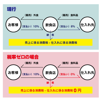 食品が税率ゼロになって、飲食店の税率が10%だと、仕入れ税額控除がゼロでの消費税納税です。それは無茶ですよね。