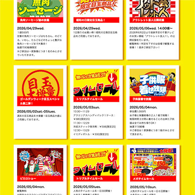 今年のゴールデンウィークは、メガマックスの気合いすごいです!詰め放題から子供服着せ放題から、アウトレット芸人のテレビ収録など、イベント山盛りです。近場レジャーが最近の傾向です。どうぞGWは、メガマックスでお楽しみください。
