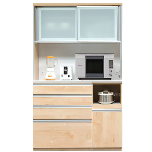 扉付きだから生活感を隠し、キッチンはいつでもすっきりとした印象に。機能性とデザイン性を兼ね備えたレンジボードを、この機会にぜひご検討ください。