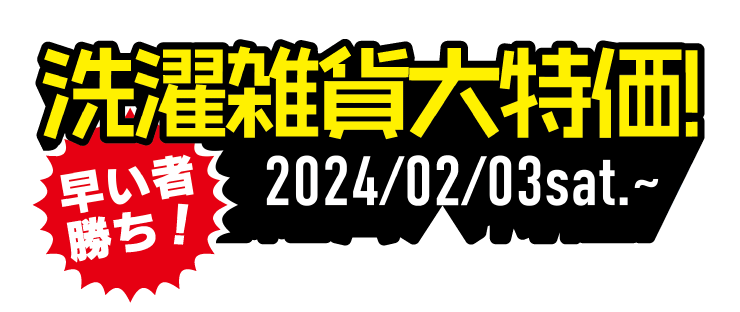 メガマックス千葉NT店では、2月3日(土)より「早い者勝ち!洗濯雑貨第特価!」と題して洗濯用品のお買い得セールを開催いたします。