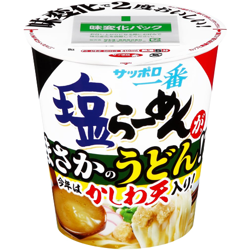 おなじみの「サッポロ一番 <塩らーめん>」を、今までに発売したことのないうどんにアレンジした。