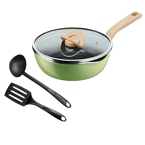 週末の目玉特価:¥3,000セット内容:ポット&パン・イン・ワン・アップルグリーン マルチパン、エピス ターナー、エピス レードル