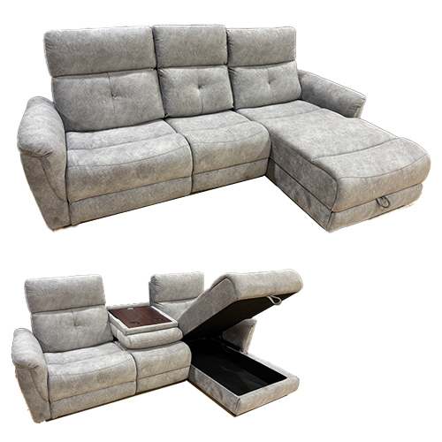 [3本限り] 片電動カウチソファ|座面下収納付き