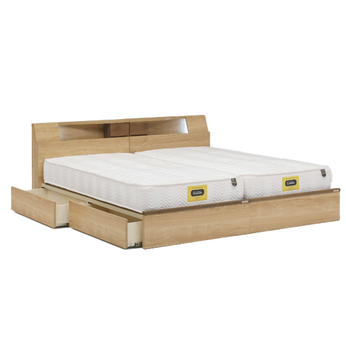 [3本限り] キャビネット、コンセント、照明、引き出し付き|ポケットコイルマットレス付き